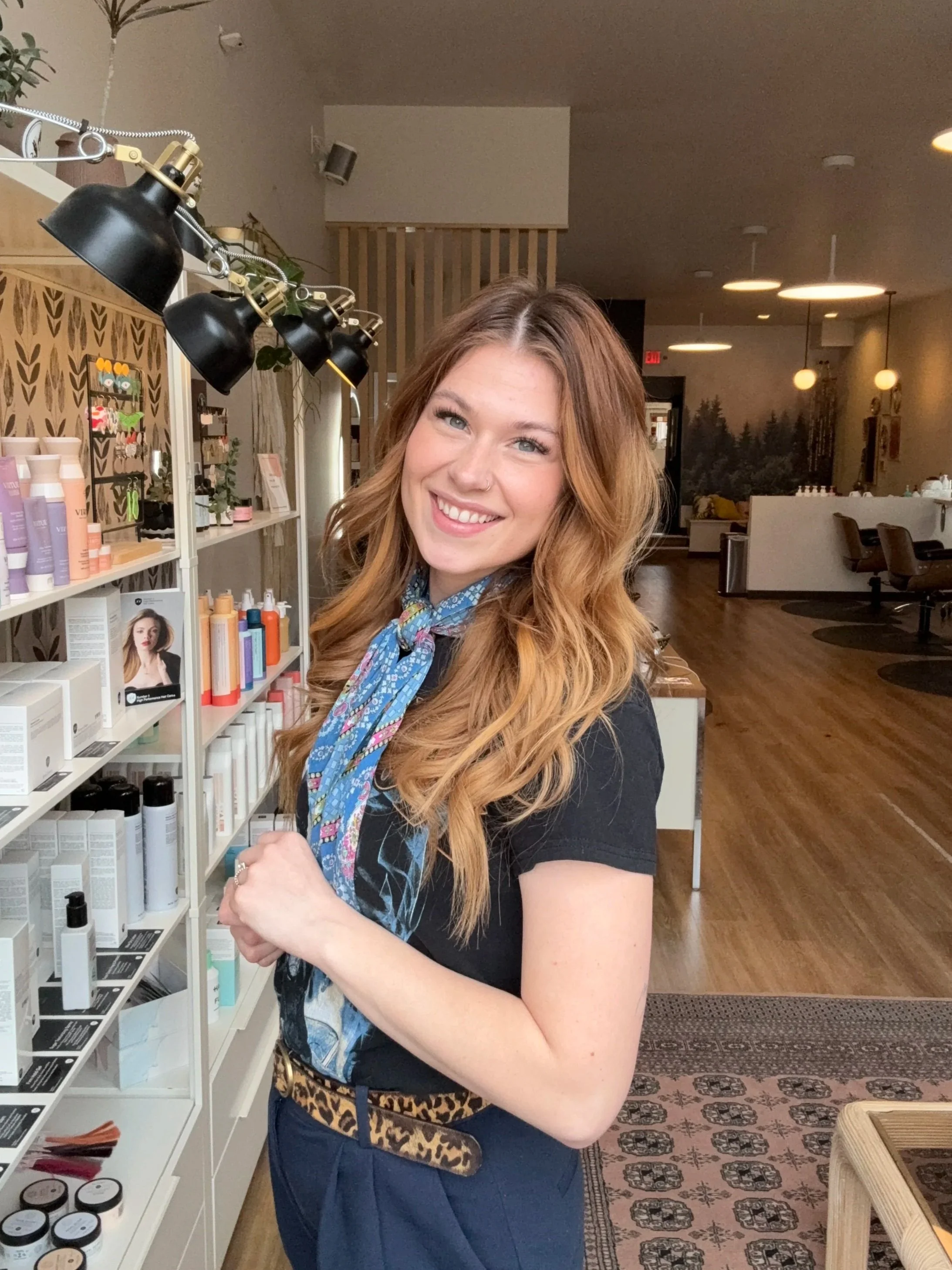 Specializes in: long and layered haircuts, beautiful blowouts, blonding services, and has a big love for lived-in color, coppers, and reds.